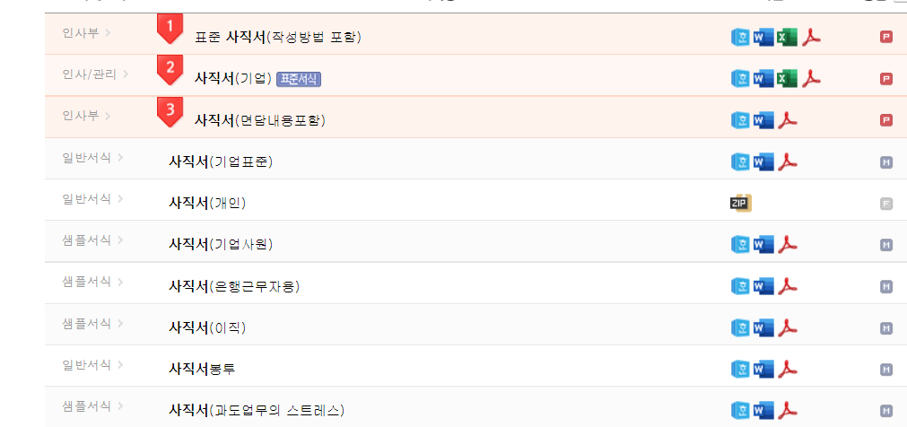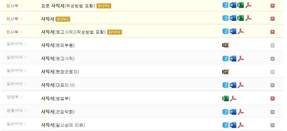 검색창에 사직서라고 검색만하면 아래처럼 쭈르륵 뭐 원하는 사유에 대해 다운로드가 가능합니다.