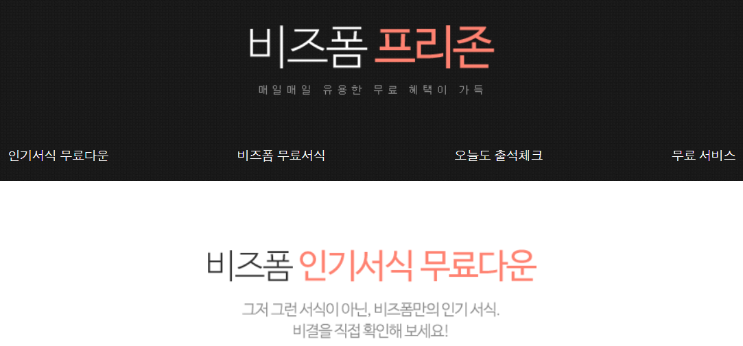 비즈폼 회사 프리존이 있습니다. 사이트 홍보 차원에서 어느 정도에 문서를 공유하고 있습니다.
