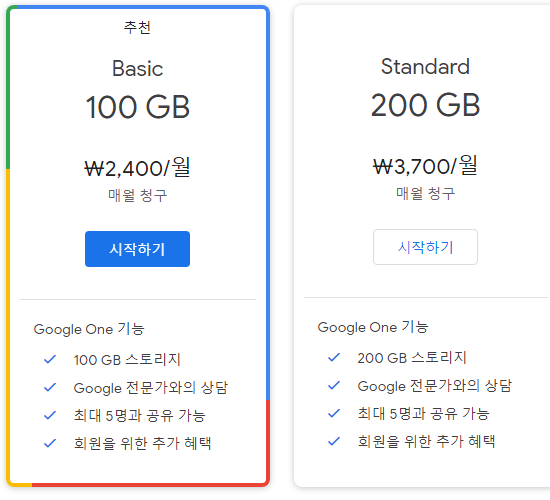 하지만 여러 공유해서 쓰고 자주 이용하시는 분들이나 사진 파일 등을 따로 저장하고 싶으신분들은 처음에는 무료로 이용해보시다가 사용하다가 부족하다면 아래 유료 요금제 중 선택해서 사용하실 수 있습니다.