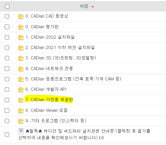 CADian 가정용 무료판을 클릭합니다.