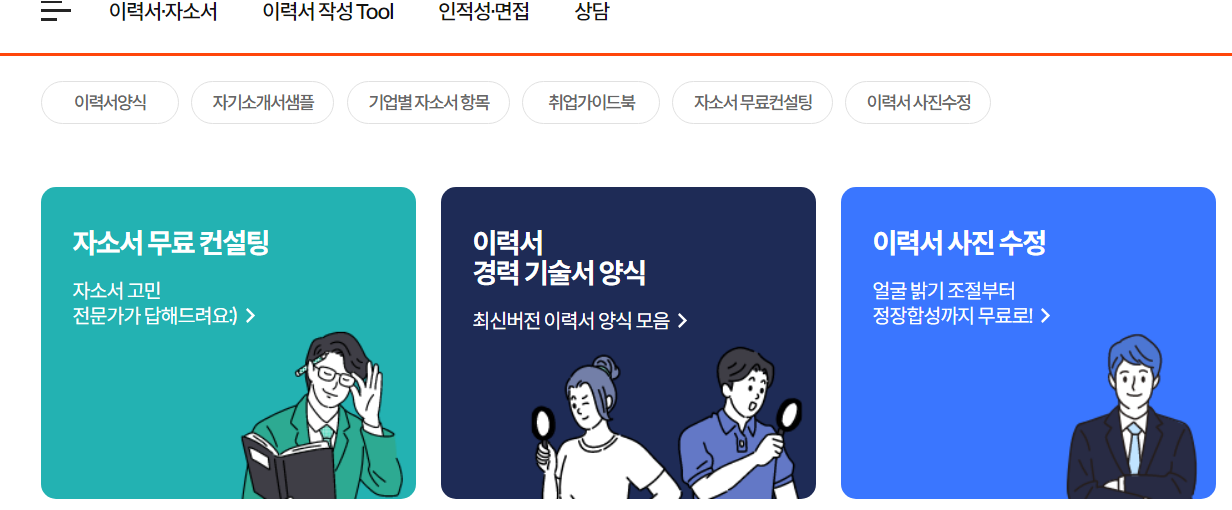 인크루트 홈페이지에서 여러 양식뿐 아니라 자기소개서 무료 컨설팅도 해줍니다.