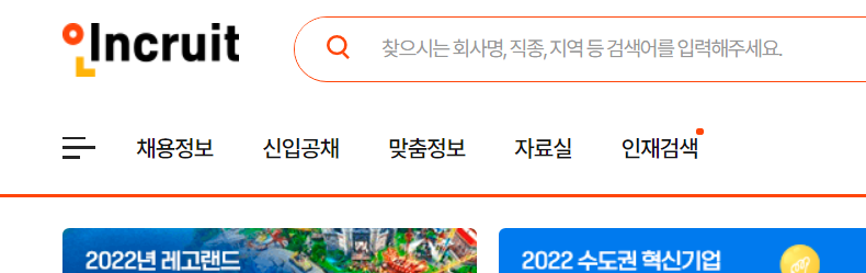 먼저 인크루트 홈페이지에 접속을 합니다.